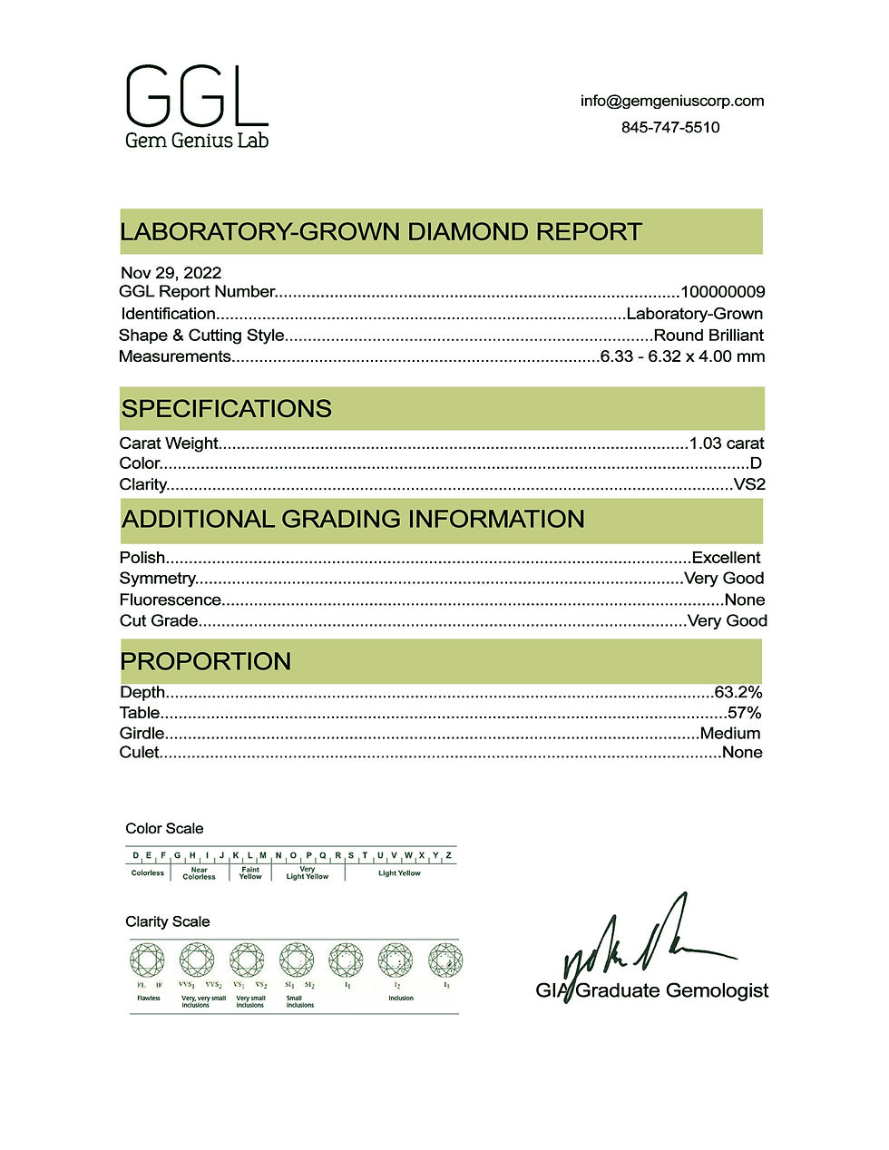1.03ct D VS2 Round Brilliant Lab Grown Diamond